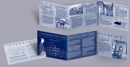 Invitation, itenerary, and response card for an architectural tour weekend in Chicago featuring David's Adler's designs.