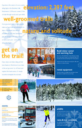 Trail map and guide for cross-country skiing at Notchview, Windsor, MA.